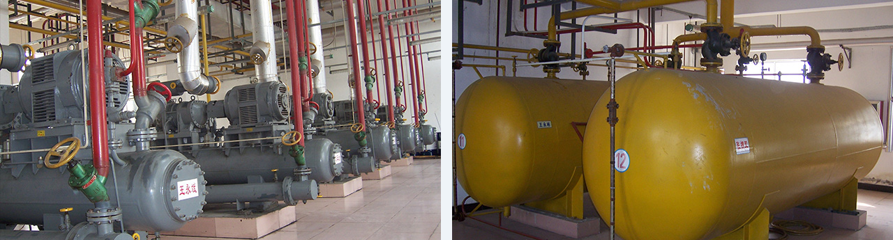 年產(chǎn)10萬噸無公害豬肉,總存儲噸位2964噸,涵蓋凍結(jié)間、冷藏間、 冷卻間、副產(chǎn)冷卻間 、鮮白條發(fā)貨間、鮮品發(fā)貨間共20間,采用氨(R717)制冷系統(tǒng),末端排管加冷風機。熱氨加水融霜,掃霜加定期熱氨排油,熱氨融霜。