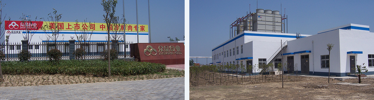 年產(chǎn)10萬噸,總存儲量3044噸,涵蓋凍結(jié)間、凍結(jié)物冷藏間、屠宰車間冷卻間、副產(chǎn)品冷卻間、鮮白條發(fā)貨間、鮮品配送發(fā)貨間,共計20間,采用氨(R717)制冷系統(tǒng),熱氨加水融霜,掃霜加定期熱氨排油,熱氨融霜。
