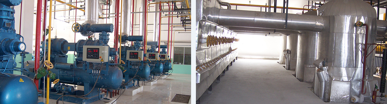 年產(chǎn)20萬(wàn)噸標(biāo)準(zhǔn)化肉類,總存儲(chǔ)噸位2362噸,涵蓋凍結(jié)間、快速冷卻間 、冷藏間、冷卻間、胴體發(fā)貨間、副產(chǎn)暫存發(fā)貨間、鮮品儲(chǔ)藏間、副產(chǎn)品儲(chǔ)藏間、內(nèi)轉(zhuǎn)產(chǎn)品儲(chǔ)藏間,共計(jì)33間。制冷系統(tǒng)采用氨制冷系統(tǒng),末端冷風(fēng)機(jī)加排管。