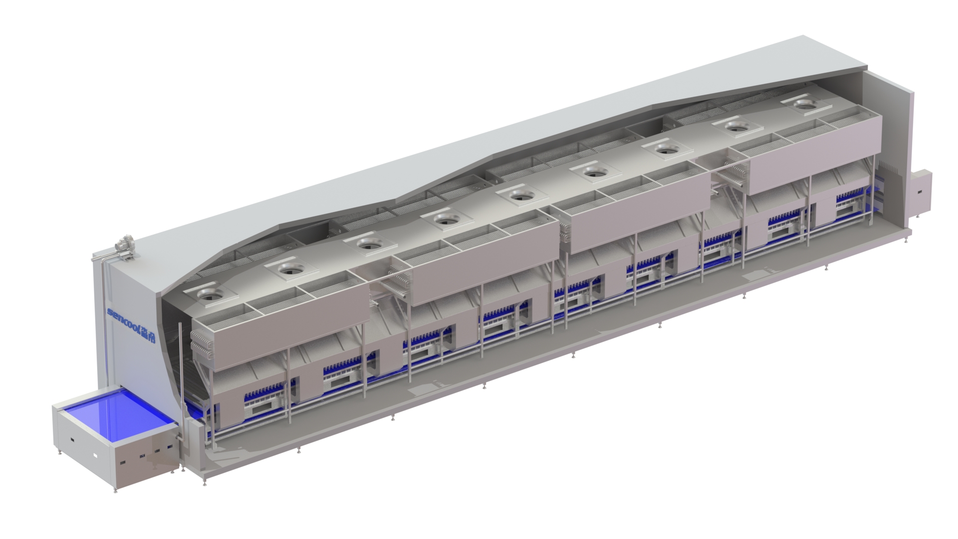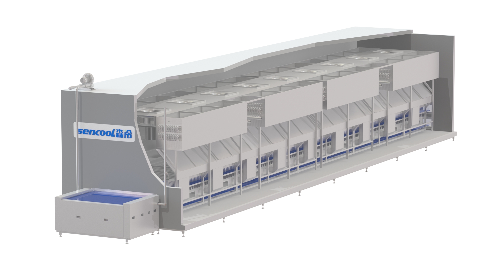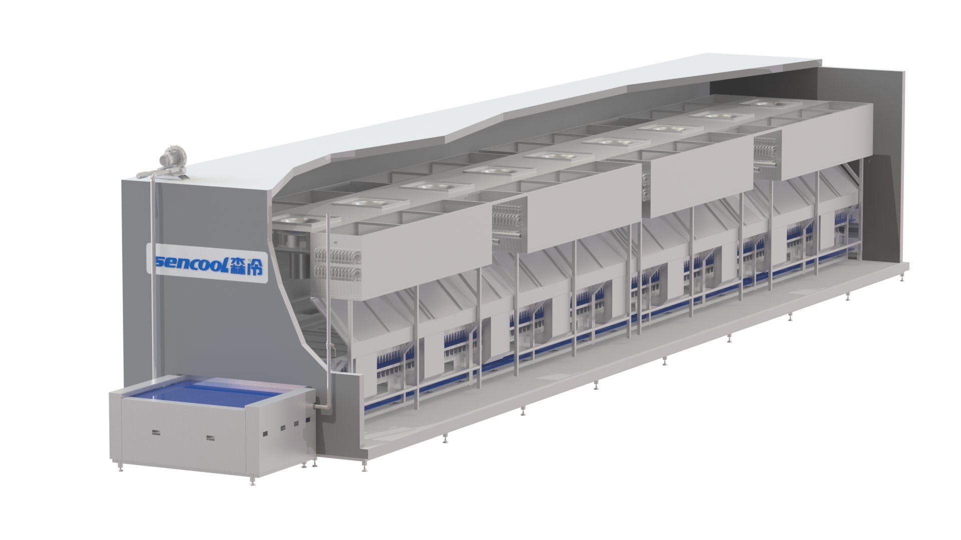 大森隧道速凍機是一種設(shè)計先進(jìn)、結(jié)構(gòu)簡單、性能卓越的直線傳輸高效速凍裝置,突出特點:凍結(jié)面積大、使用范圍廣。
