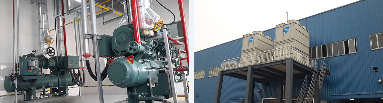 一座單層鋼結(jié)構(gòu)冷庫。本項目為固定貨架裝配式冷庫,采用封閉式降溫穿堂(3±2°C)。1號、2號冷庫庫溫-18°C~-22°C,存儲6014噸。3號冷庫庫溫5°C,容量為229噸。降溫穿堂溫度為3±2°C。采用氨(R717)制冷系統(tǒng),末端吊頂式冷風機,手指令自動熱氨融霜。