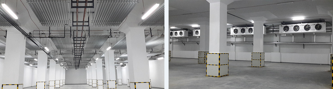 兩座六層土建冷庫,冷庫面積90000㎡,庫容超10萬噸。含低溫庫、高溫庫。采用氟利昂(R507)制冷系統(tǒng),末端冷風機及排管,鋁排管采用定期手動掃霜,冷風機采用水沖霜,自動或手指令控制。業(yè)主單位南通農(nóng)副產(chǎn)品物流有限公司是由南通汽運實業(yè)集團有限公司、南通市供銷合作總社和中國農(nóng)發(fā)重點建設基金有限公司共同出資建設的一家綜合性農(nóng)產(chǎn)品批發(fā)市場。
